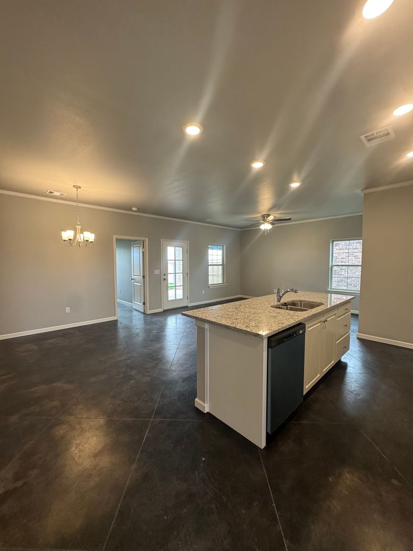 Amazing new home !!! 3 bedrooms 2 bathrooms 2 car garage! Be the 1st to live here! Granite countertops throughout, stamp concrete luxury floors, fabulous floor plan. $35.00 app fee per applicant. Apply at aupropertymgmt.com Call the office at 806-331-6803